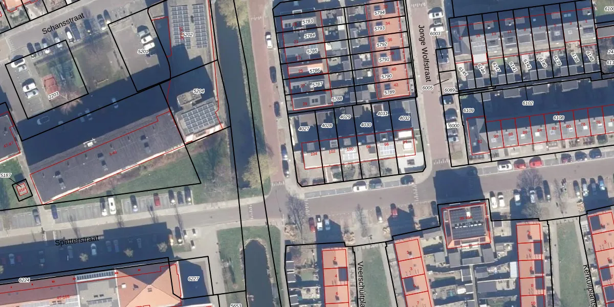Gebruik de zoekbalk of klik op een perceel voor informatie over de adressen binnen dit perceel.