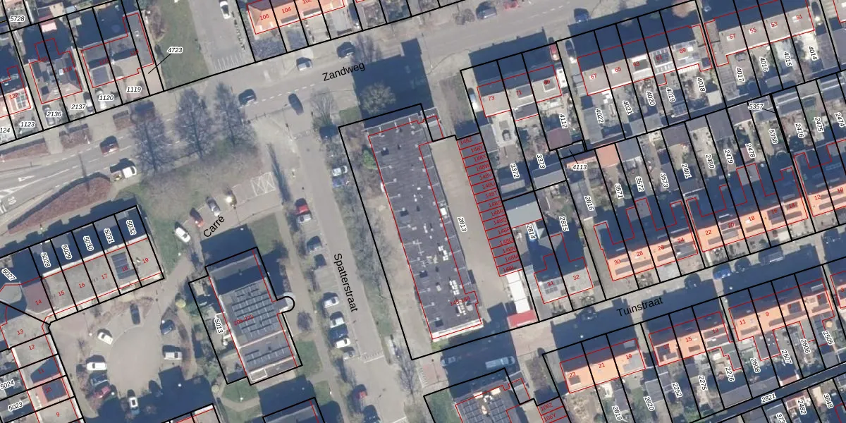 Het perceel waarop Spatterstraat 148-A staat heeft een oppervlakte van 1693 m². Dit is een zeer groot perceel. De perceeloppervlakte wordt geregistreerd door het Kadaster. Gedetailleerde informatie over de maten van dit perceel kunt u vinden in het rapport Kadastrale kaart met maatvoering van Spatterstraat 148-A.