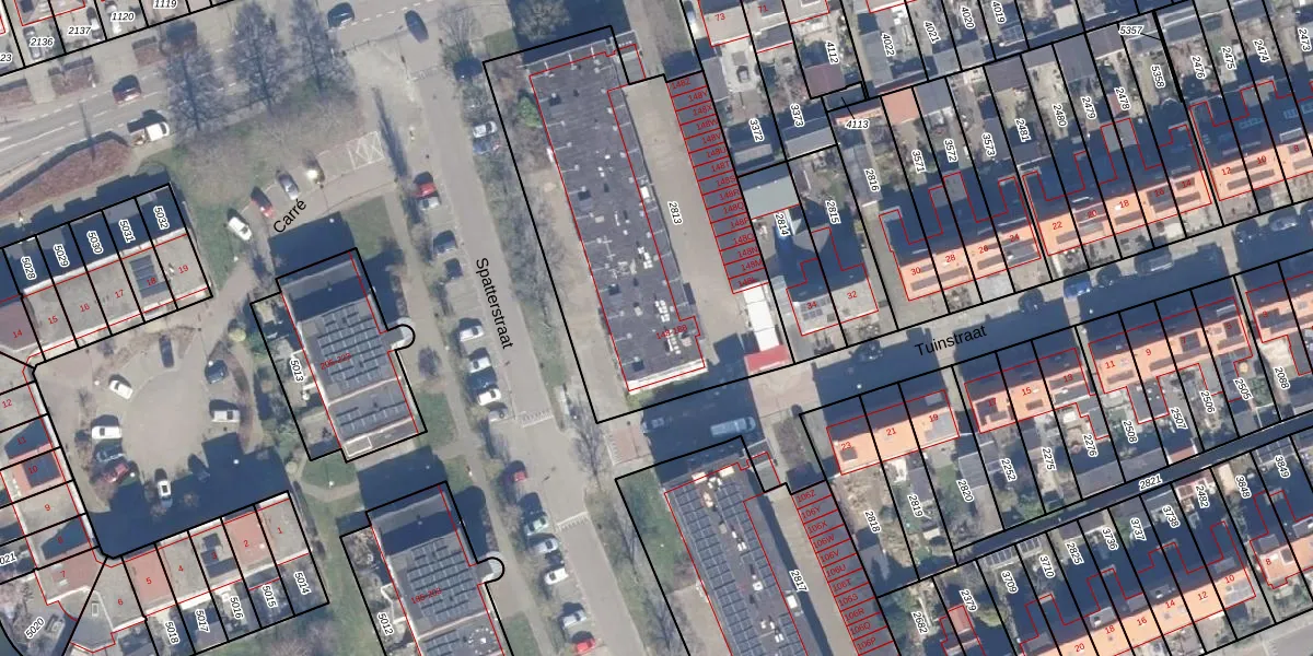 Het perceel waarop Spatterstraat 152 staat heeft een oppervlakte van 1693 m². Dit is een zeer groot perceel. De perceeloppervlakte wordt geregistreerd door het Kadaster. Gedetailleerde informatie over de maten van dit perceel kunt u vinden in het rapport Kadastrale kaart met maatvoering van Spatterstraat 152.