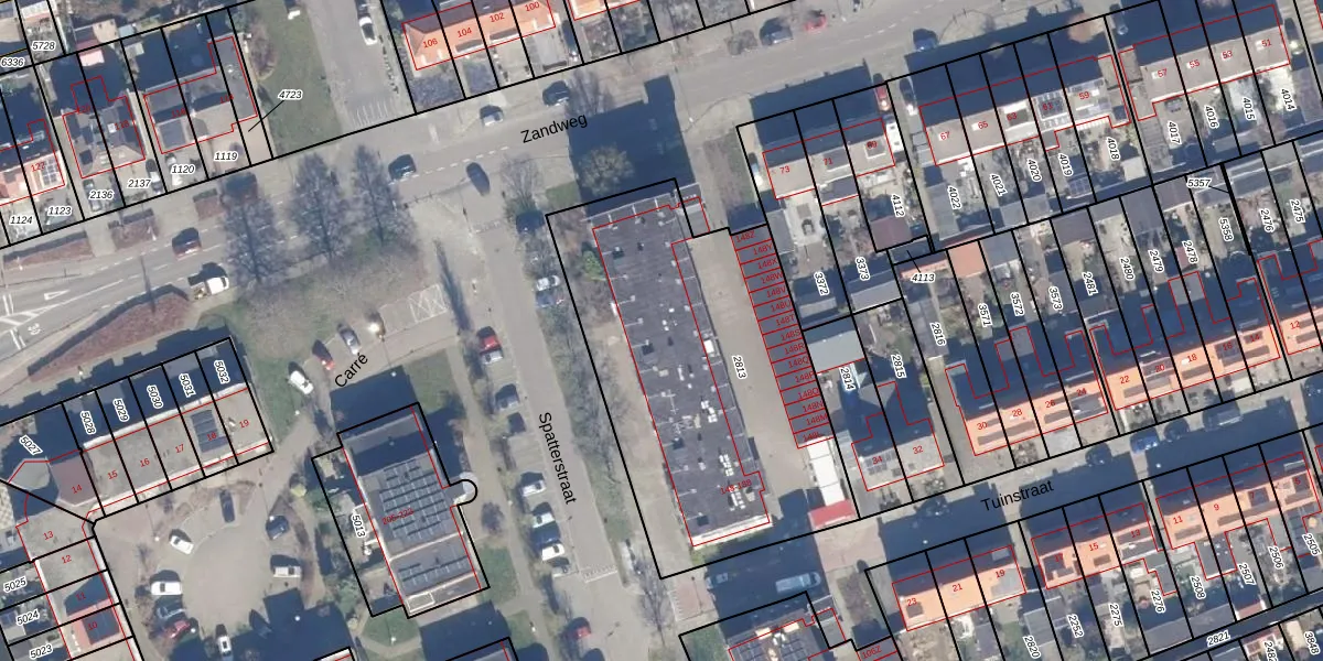 Het perceel waarop Spatterstraat 172 staat heeft een oppervlakte van 1693 m². Dit is een zeer groot perceel. De perceeloppervlakte wordt geregistreerd door het Kadaster. Gedetailleerde informatie over de maten van dit perceel kunt u vinden in het rapport Kadastrale kaart met maatvoering van Spatterstraat 172.