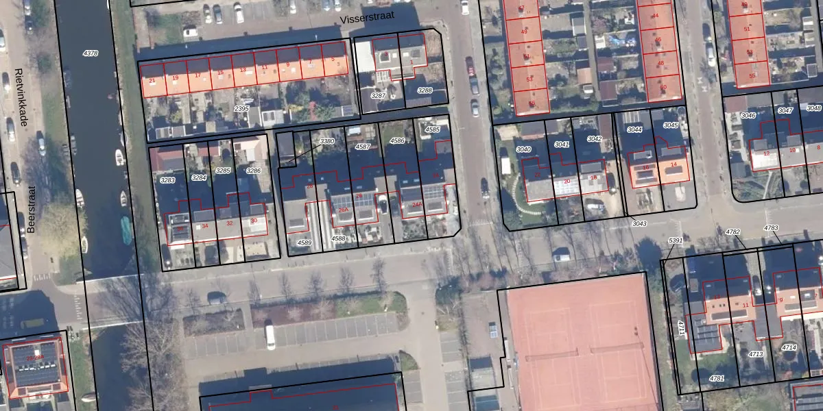 Gebruik de zoekbalk of klik op een perceel voor informatie over de adressen binnen dit perceel.