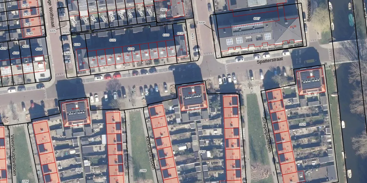 Het perceel waarop Spatterstraat 37-A staat heeft een oppervlakte van 3007 m². Dit is een zeer groot perceel. De perceeloppervlakte wordt geregistreerd door het Kadaster. Gedetailleerde informatie over de maten van dit perceel kunt u vinden in het rapport Kadastrale kaart met maatvoering van Spatterstraat 37-A.
