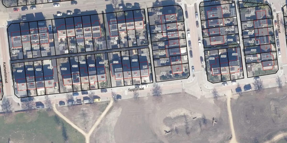Gebruik de zoekbalk of klik op een perceel voor informatie over de adressen binnen dit perceel.