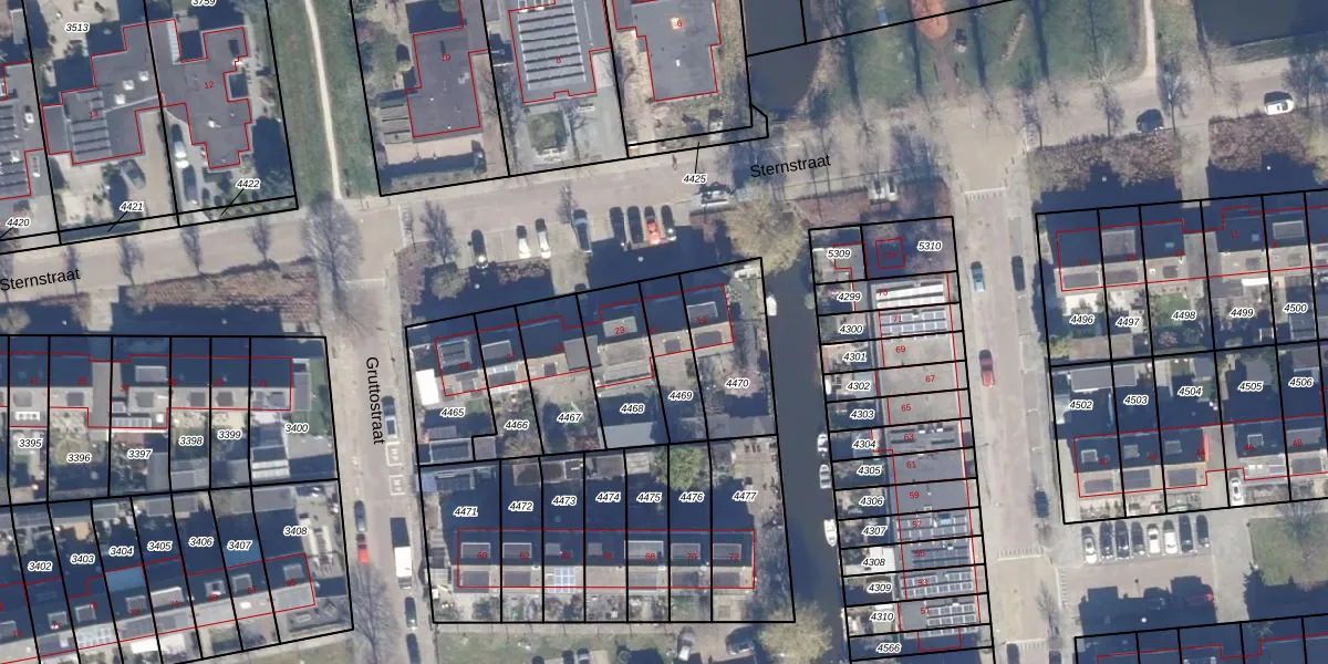 Gebruik de zoekbalk of klik op een perceel voor informatie over de adressen binnen dit perceel.