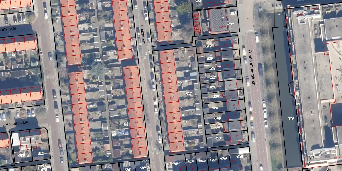 Valkstraat 43 is gelegen op kadastraal perceel WMR00F2446. Deze kadastrale aanduiding is uniek en wordt gebruikt door het Kadaster om eigendomsrechten en andere zakelijke rechten vast te leggen. Het perceel maakt onderdeel uit van de kadastrale gemeente Wormer.