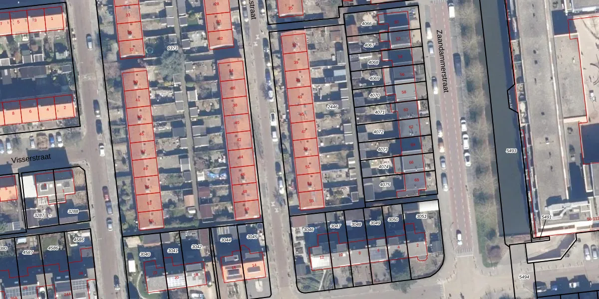 Het adres ligt op het perceel WMR00-F-2446, dat zich in de kadastrale gemeente Wormer bevindt. Het perceel is 1582 m² groot. Dat is kleiner dan de gemiddelde perceeloppervlakte in Wormer, dat op 2748,14 m² ligt. Het kleinste perceel in de kadastrale gemeente is 0 m² groot. De grootste perceeloppervlakte is 41,3 ha. Op het perceel zijn 10 adressen aanwezig. De huidige grenzen van het perceel zijn digitaal in de Basisregistratie Kadaster (BRK) geregistreerd op 03-03-2009.