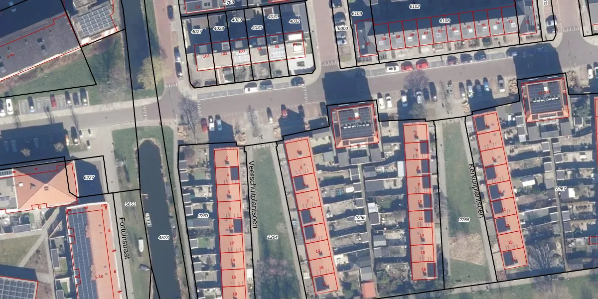 Het perceel waarop Veerschuitplantsoen 1 staat heeft een oppervlakte van 3032 m². Dit is een zeer groot perceel. De perceeloppervlakte wordt geregistreerd door het Kadaster. Gedetailleerde informatie over de maten van dit perceel kunt u vinden in het rapport Kadastrale kaart met maatvoering van Veerschuitplantsoen 1.