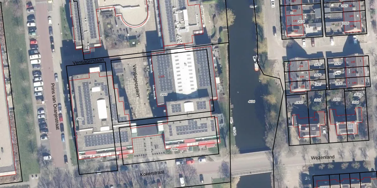 Het perceel waarop Ventjagersplein 19 staat heeft een oppervlakte van 1704 m². Dit is een zeer groot perceel. De perceeloppervlakte wordt geregistreerd door het Kadaster. Gedetailleerde informatie over de maten van dit perceel kunt u vinden in het rapport Kadastrale kaart met maatvoering van Ventjagersplein 19.