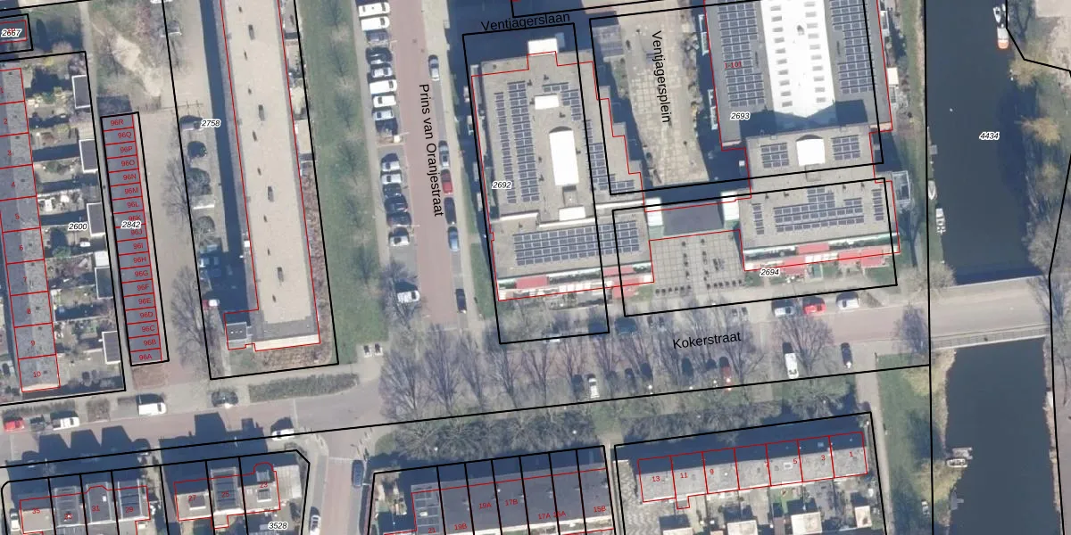 Het perceel waarop Ventjagersplein 49 staat heeft een oppervlakte van 1213 m². Dit is een zeer groot perceel. De perceeloppervlakte wordt geregistreerd door het Kadaster. Gedetailleerde informatie over de maten van dit perceel kunt u vinden in het rapport Kadastrale kaart met maatvoering van Ventjagersplein 49.
