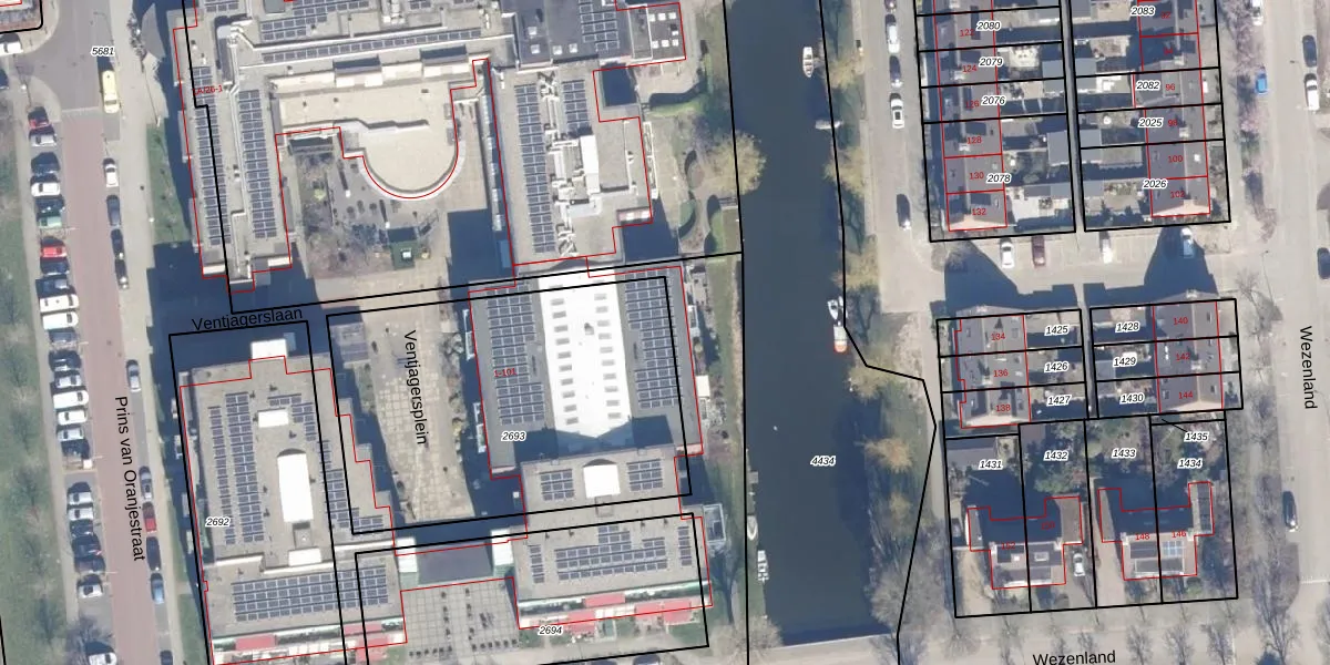 Het perceel waarop Ventjagersplein 9 staat heeft een oppervlakte van 1704 m². Dit is een zeer groot perceel. De perceeloppervlakte wordt geregistreerd door het Kadaster. Gedetailleerde informatie over de maten van dit perceel kunt u vinden in het rapport Kadastrale kaart met maatvoering van Ventjagersplein 9.