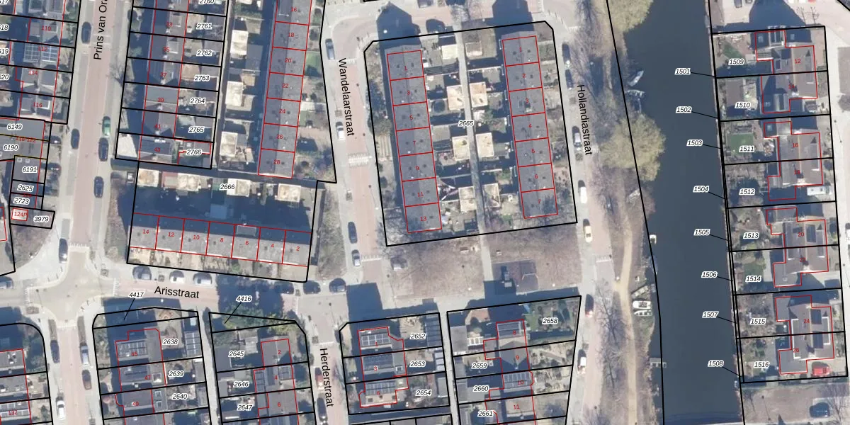 Het perceel waarop Wandelaarstraat 13 staat heeft een oppervlakte van 2157 m². Dit is een zeer groot perceel. De perceeloppervlakte wordt geregistreerd door het Kadaster. Gedetailleerde informatie over de maten van dit perceel kunt u vinden in het rapport Kadastrale kaart met maatvoering van Wandelaarstraat 13.