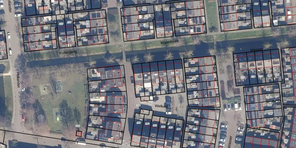Het adres ligt op het perceel WMR00-I-252, dat zich in de kadastrale gemeente Wormer bevindt. Het perceel is kleiner dan gemiddeld in Wormer. Het perceel is 128 m² groot, terwijl het gemiddelde ligt op 2750,49 m². Het kleinste perceel in de kadastrale gemeente is 0 m² groot. De grootste perceeloppervlakte is 41,3 ha. Er zijn geen andere adressen aanwezig op het perceel. In de Basisregistratie Kadaster (BRK) werden de grenzen van het perceel geregistreerd op 21-12-2001.
