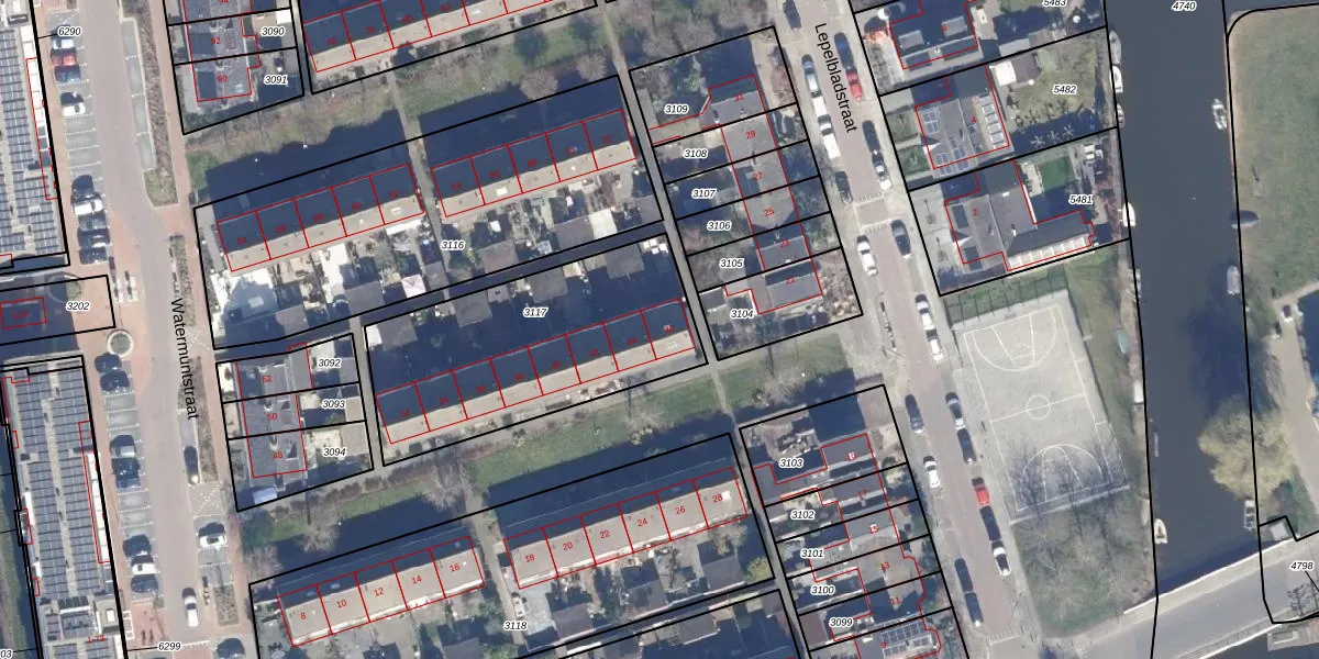 Het perceel waarop Watermuntstraat 46 staat heeft een oppervlakte van 1047 m². Dit is een zeer groot perceel. De perceeloppervlakte wordt geregistreerd door het Kadaster. Gedetailleerde informatie over de maten van dit perceel kunt u vinden in het rapport Kadastrale kaart met maatvoering van Watermuntstraat 46.