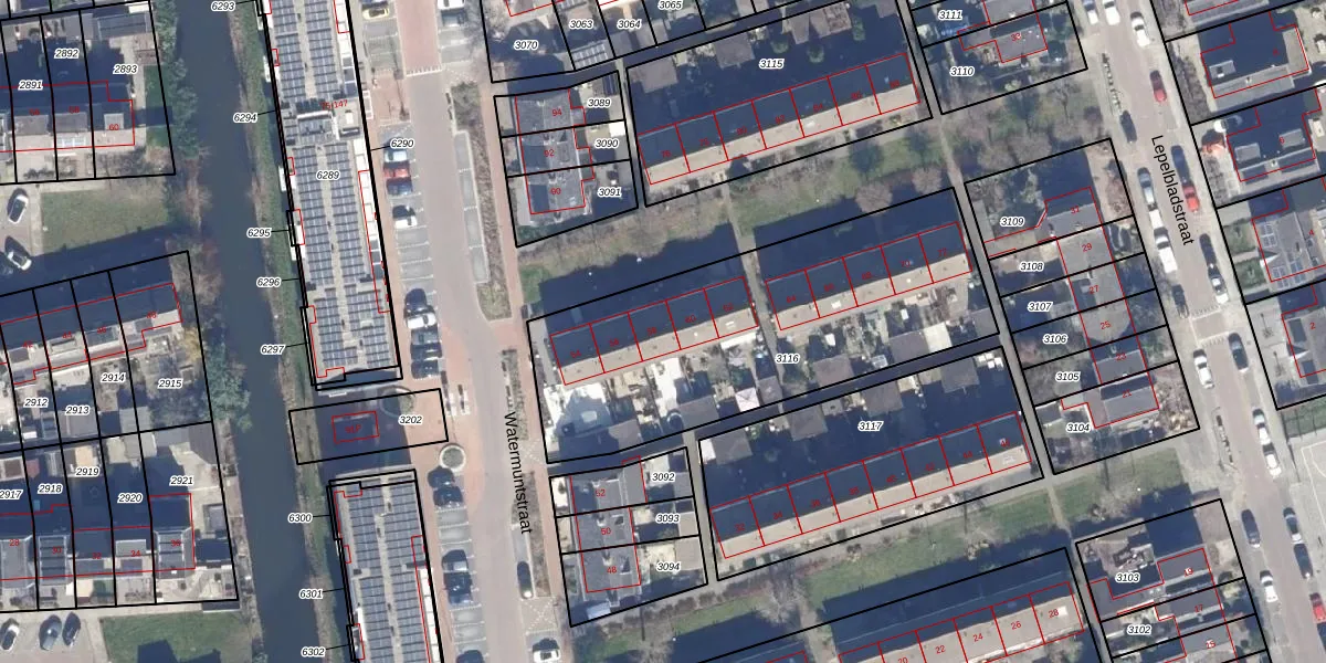 Het perceel waarop Watermuntstraat 58 staat heeft een oppervlakte van 1577 m². Dit is een zeer groot perceel. De perceeloppervlakte wordt geregistreerd door het Kadaster. Gedetailleerde informatie over de maten van dit perceel kunt u vinden in het rapport Kadastrale kaart met maatvoering van Watermuntstraat 58.
