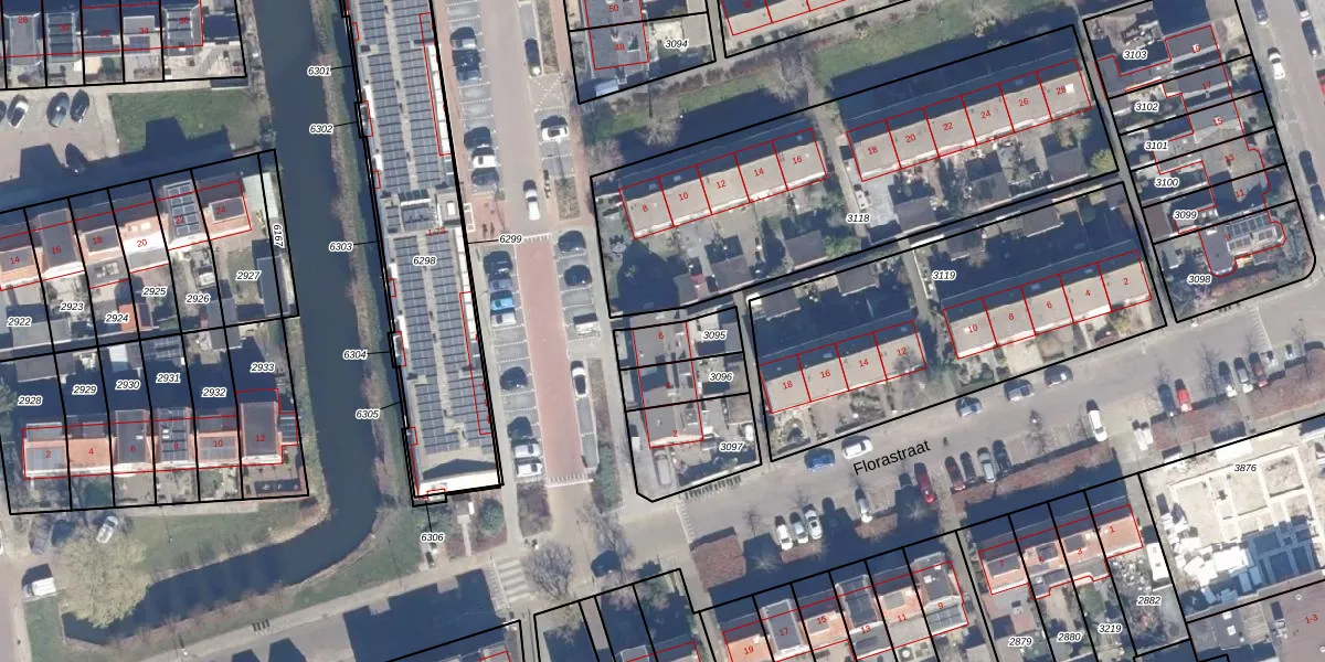 Gebruik de zoekbalk of klik op een perceel voor informatie over de adressen binnen dit perceel.