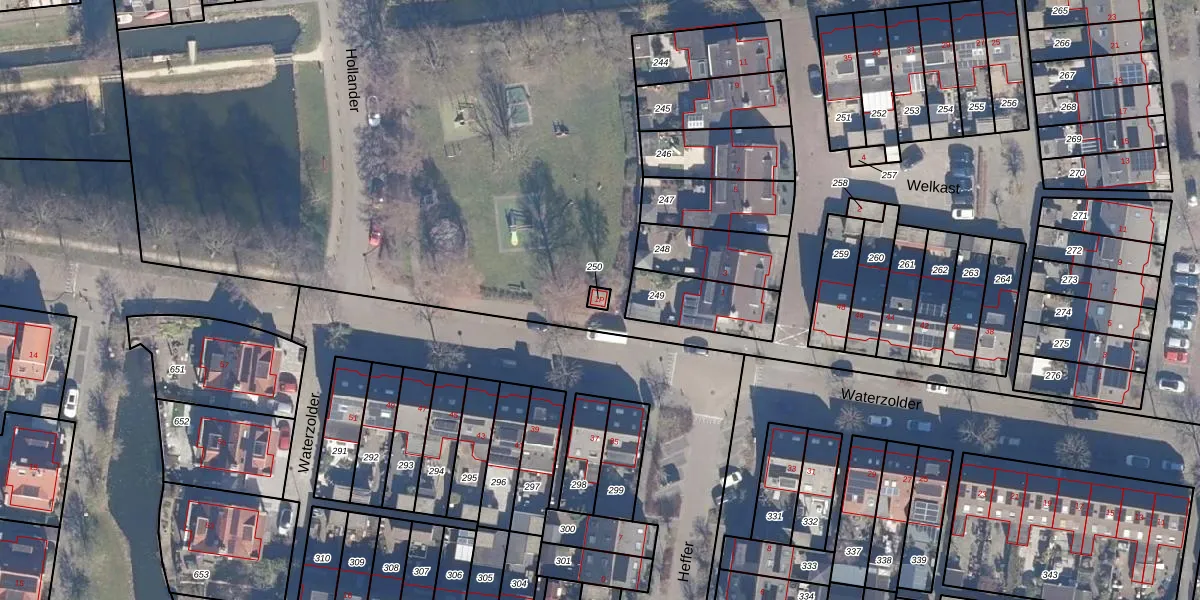 Het perceel waarop Welkast 1-P staat heeft een oppervlakte van 12 m². Dit is een klein perceel. De perceeloppervlakte wordt geregistreerd door het Kadaster. Gedetailleerde informatie over de maten van dit perceel kunt u vinden in het rapport Kadastrale kaart met maatvoering van Welkast 1-P.