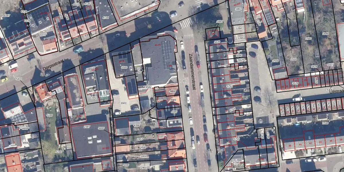Het perceel waarop Zaandammerstraat 4-B staat heeft een oppervlakte van 710 m². Dit is een groot perceel. De perceeloppervlakte wordt geregistreerd door het Kadaster. Gedetailleerde informatie over de maten van dit perceel kunt u vinden in het rapport Kadastrale kaart met maatvoering van Zaandammerstraat 4-B.