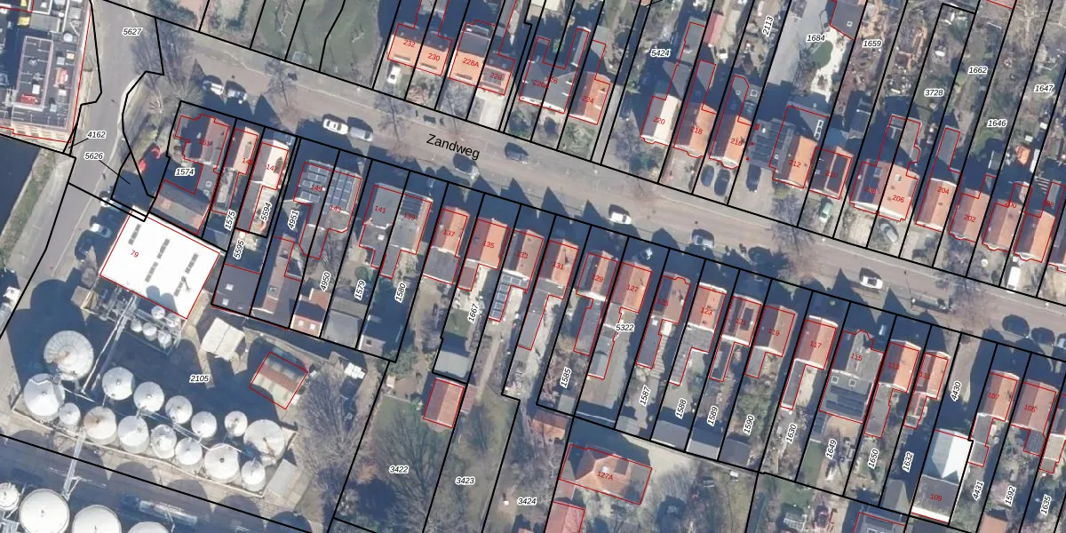 Het perceel waarop Zandweg 133 staat heeft een oppervlakte van 589 m². Dit is een groot perceel. De perceeloppervlakte wordt geregistreerd door het Kadaster. Gedetailleerde informatie over de maten van dit perceel kunt u vinden in het rapport Kadastrale kaart met maatvoering van Zandweg 133.