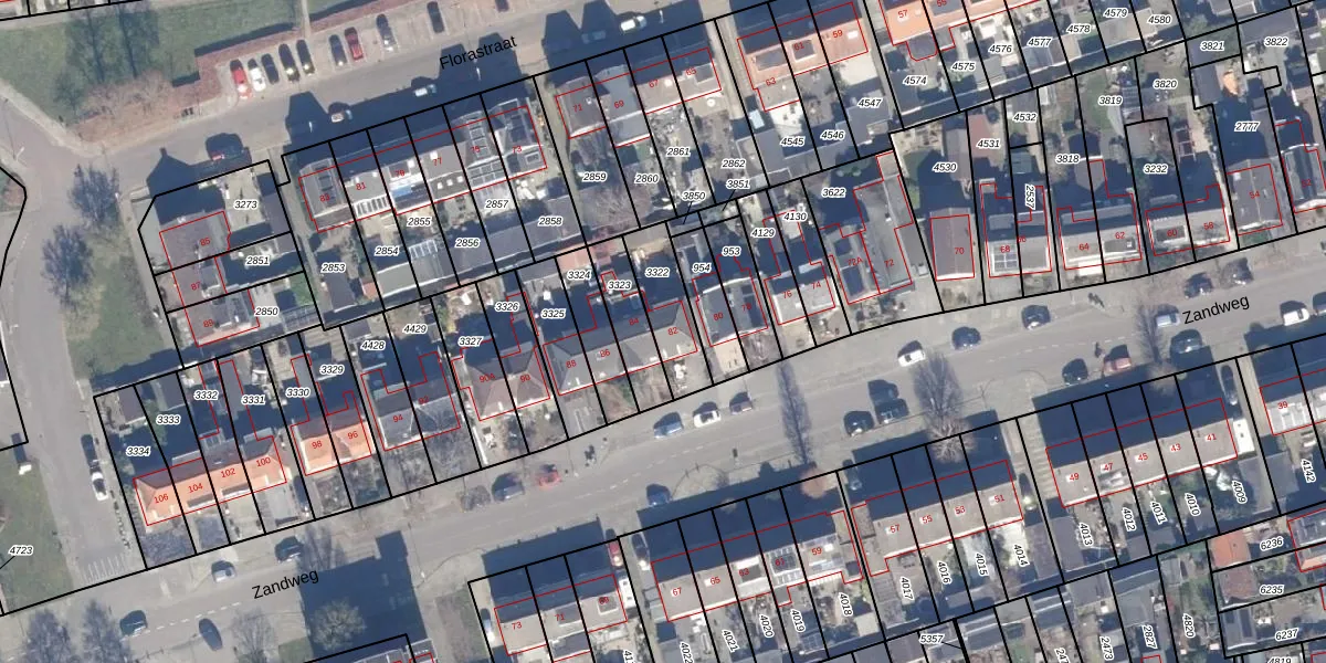 Gebruik de zoekbalk of klik op een perceel voor informatie over de adressen binnen dit perceel.