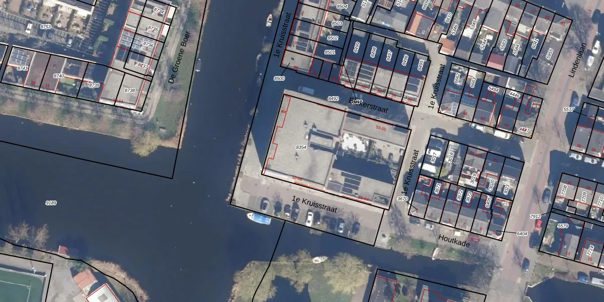 Het perceel waarop 1e Kruisstraat 16 staat heeft een oppervlakte van 1196 m². Dit is een zeer groot perceel. De perceeloppervlakte wordt geregistreerd door het Kadaster. Gedetailleerde informatie over de maten van dit perceel kunt u vinden in het rapport Kadastrale kaart met maatvoering van 1e Kruisstraat 16.