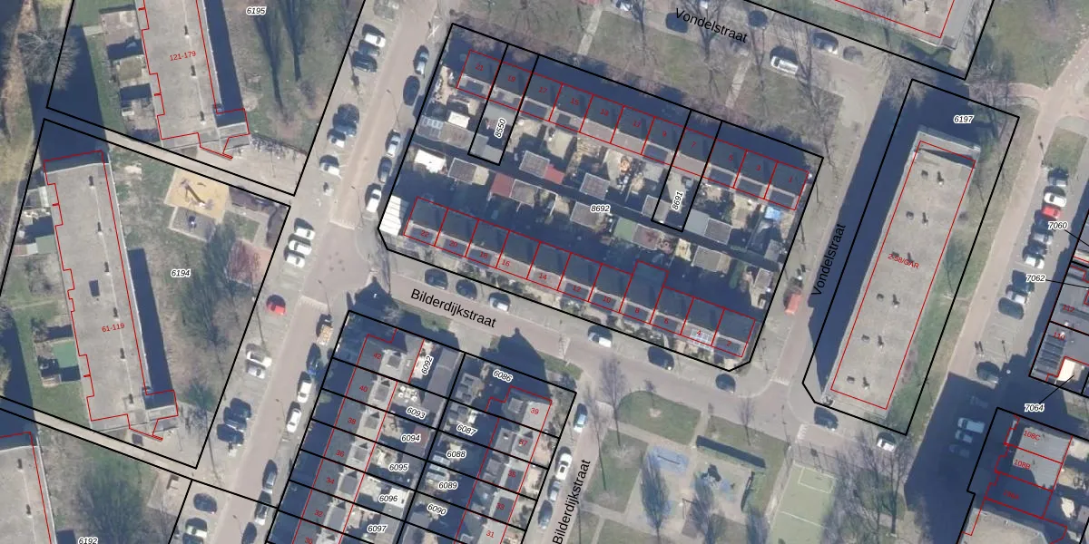 Het perceel waarop Bilderdijkstraat 14 staat heeft een oppervlakte van 2840 m². Dit is een zeer groot perceel. De perceeloppervlakte wordt geregistreerd door het Kadaster. Gedetailleerde informatie over de maten van dit perceel kunt u vinden in het rapport Kadastrale kaart met maatvoering van Bilderdijkstraat 14.
