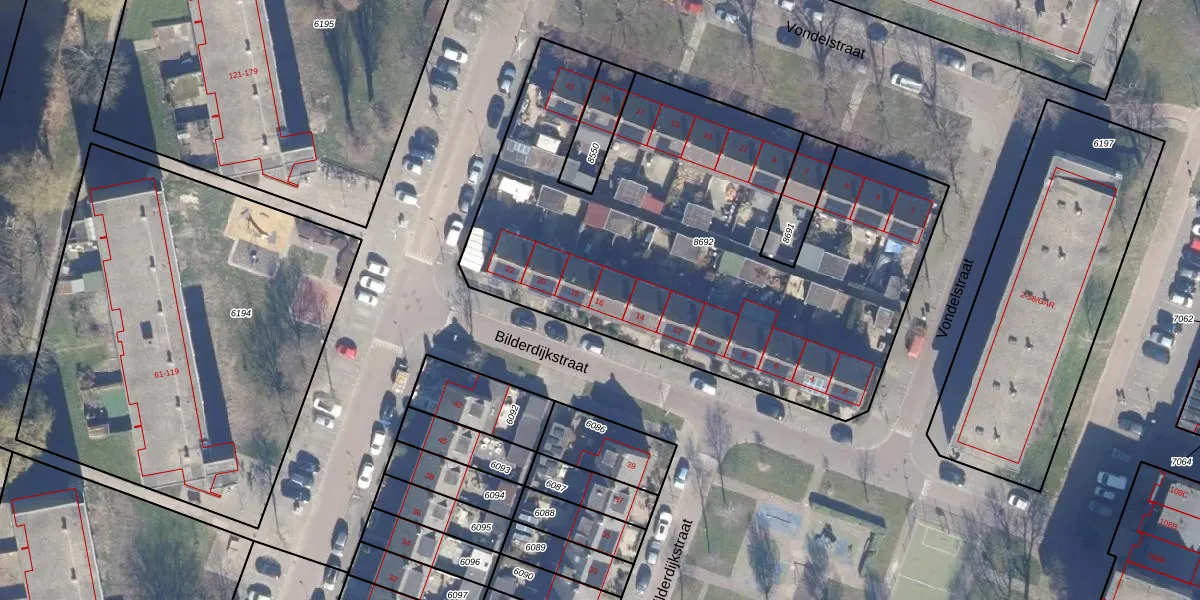 Het perceel waarop Bilderdijkstraat 16 staat heeft een oppervlakte van 2840 m². Dit is een zeer groot perceel. De perceeloppervlakte wordt geregistreerd door het Kadaster. Gedetailleerde informatie over de maten van dit perceel kunt u vinden in het rapport Kadastrale kaart met maatvoering van Bilderdijkstraat 16.