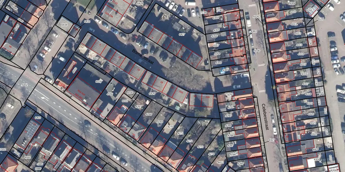 Borneostraat 20 is gelegen op kadastraal perceel WMV00B6426. Deze kadastrale aanduiding is uniek en wordt gebruikt door het Kadaster om eigendomsrechten en andere zakelijke rechten vast te leggen. Het perceel maakt onderdeel uit van de kadastrale gemeente Wormerveer.
