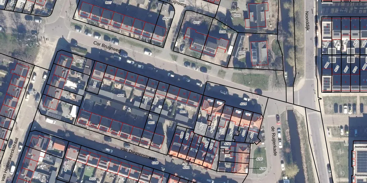 Cor Bruijnweg 15 is gelegen op kadastraal perceel WMV00A8914. Deze kadastrale aanduiding is uniek en wordt gebruikt door het Kadaster om eigendomsrechten en andere zakelijke rechten vast te leggen. Het perceel maakt onderdeel uit van de kadastrale gemeente Wormerveer.