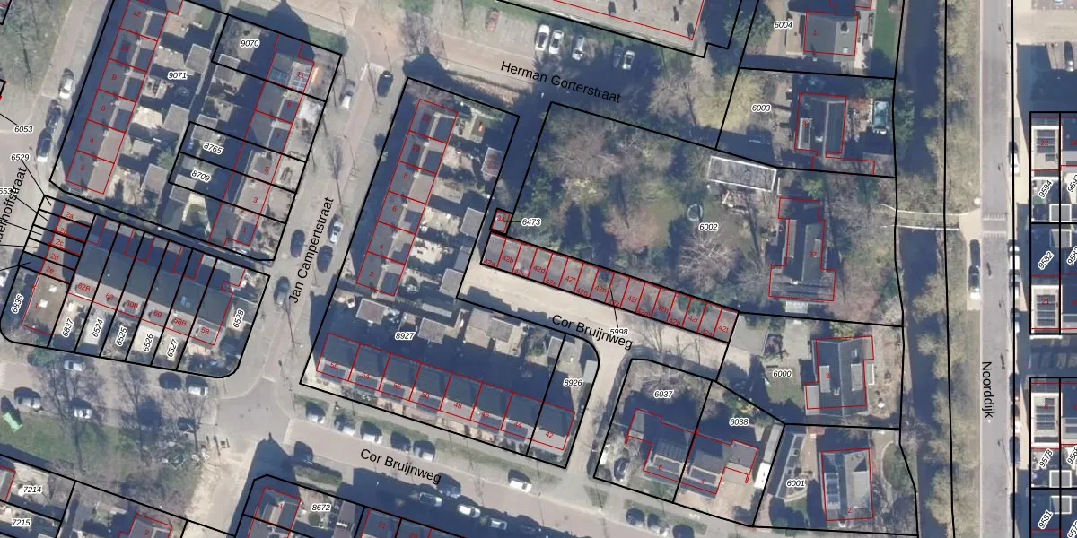 Cor Bruijnweg 42-d is gelegen op kadastraal perceel WMV00A5998. Deze kadastrale aanduiding is uniek en wordt gebruikt door het Kadaster om eigendomsrechten en andere zakelijke rechten vast te leggen. Het perceel maakt onderdeel uit van de kadastrale gemeente Wormerveer.