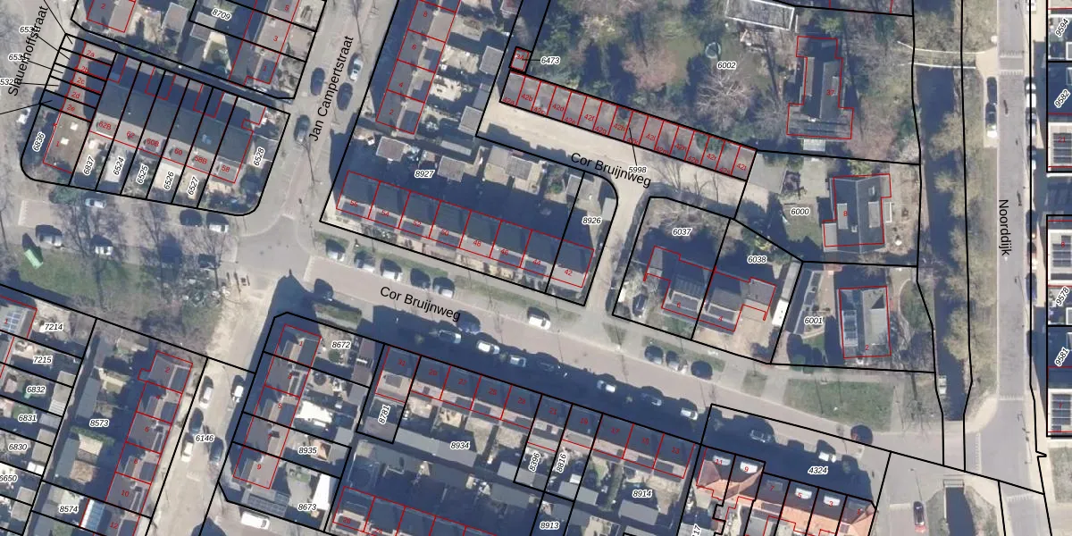 Cor Bruijnweg 44 is gelegen op kadastraal perceel WMV00A8927. Deze kadastrale aanduiding is uniek en wordt gebruikt door het Kadaster om eigendomsrechten en andere zakelijke rechten vast te leggen. Het perceel maakt onderdeel uit van de kadastrale gemeente Wormerveer.