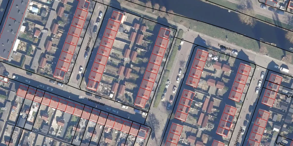 Het perceel waarop Dahliastraat 7-A staat heeft een oppervlakte van 3008 m². Dit is een zeer groot perceel. De perceeloppervlakte wordt geregistreerd door het Kadaster. Gedetailleerde informatie over de maten van dit perceel kunt u vinden in het rapport Kadastrale kaart met maatvoering van Dahliastraat 7-A.
