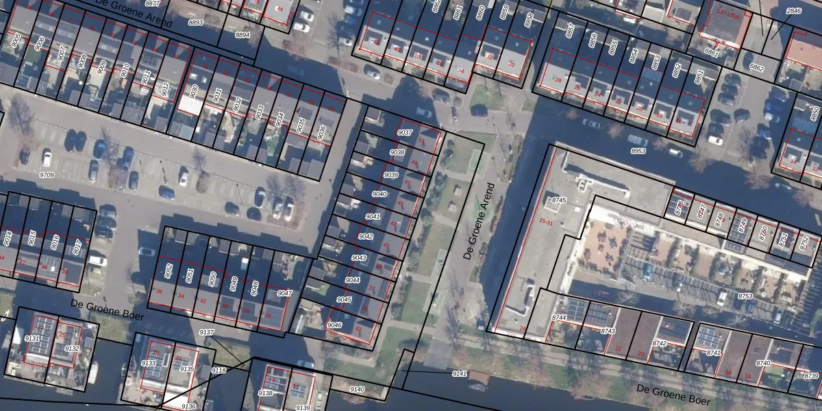 De Groene Arend 45 is gelegen op kadastraal perceel WMV00A9040. Deze kadastrale aanduiding is uniek en wordt gebruikt door het Kadaster om eigendomsrechten en andere zakelijke rechten vast te leggen. Het perceel maakt onderdeel uit van de kadastrale gemeente Wormerveer.