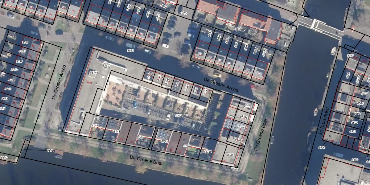 Het perceel waarop De Groene Arend 5 staat heeft een oppervlakte van 44 m². Dit is een klein perceel. De perceeloppervlakte wordt geregistreerd door het Kadaster. Gedetailleerde informatie over de maten van dit perceel kunt u vinden in het rapport Kadastrale kaart met maatvoering van De Groene Arend 5.