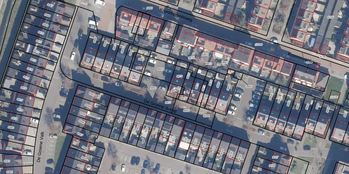 Het perceel waarop De Groene Arend 54 staat heeft een oppervlakte van 51 m². Dit is een klein perceel. De perceeloppervlakte wordt geregistreerd door het Kadaster. Gedetailleerde informatie over de maten van dit perceel kunt u vinden in het rapport Kadastrale kaart met maatvoering van De Groene Arend 54.