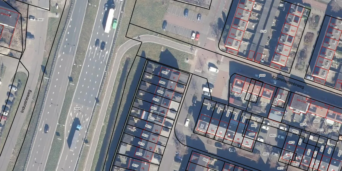 Gebruik de zoekbalk of klik op een perceel voor informatie over de adressen binnen dit perceel.