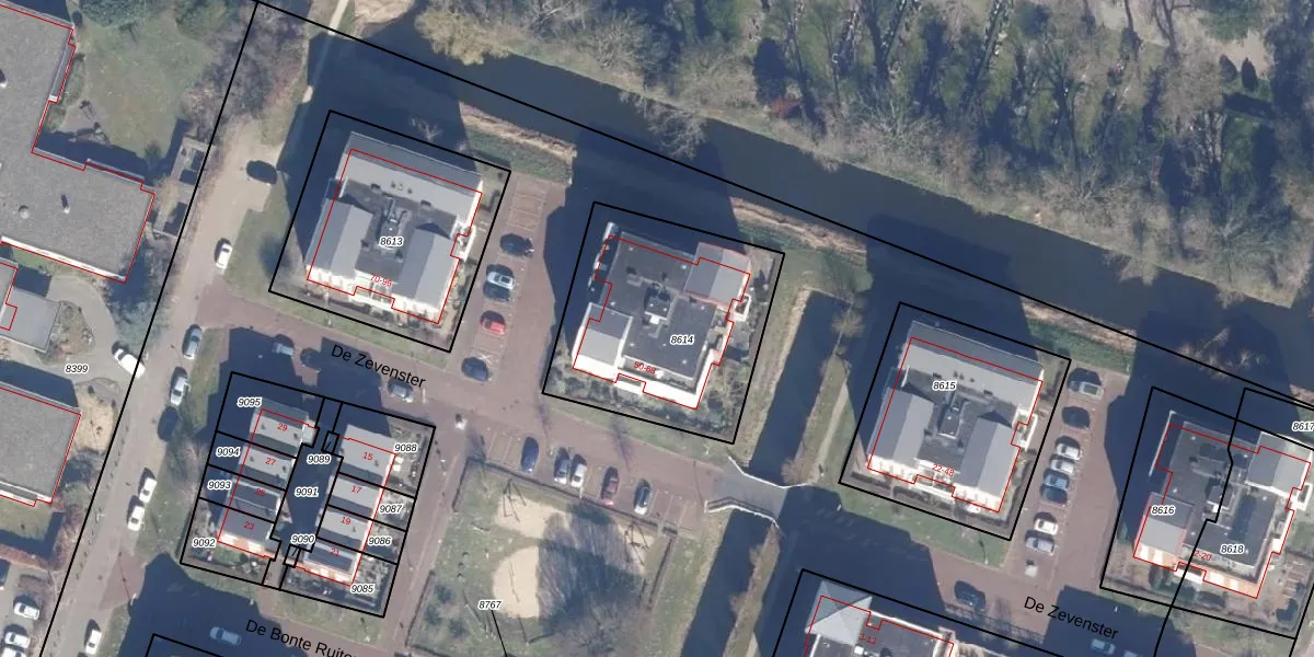 Het perceel waarop De Zevenster 56 staat heeft een oppervlakte van 900 m². Dit is een groot perceel. De perceeloppervlakte wordt geregistreerd door het Kadaster. Gedetailleerde informatie over de maten van dit perceel kunt u vinden in het rapport Kadastrale kaart met maatvoering van De Zevenster 56.