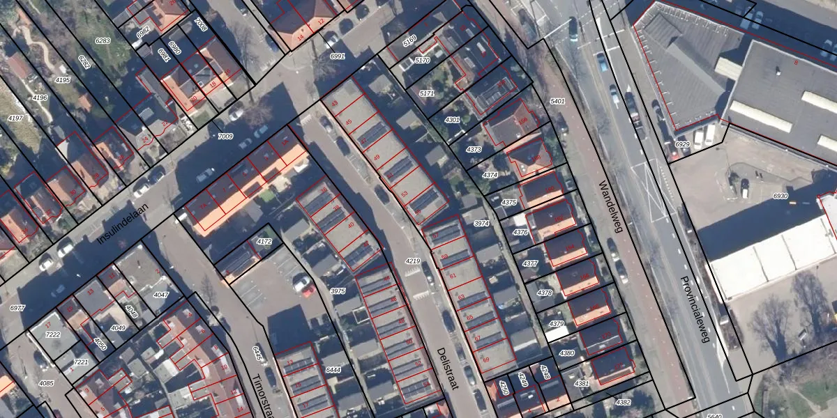 Het perceel waarop Delistraat 55 staat heeft een oppervlakte van 1455 m². Dit is een zeer groot perceel. De perceeloppervlakte wordt geregistreerd door het Kadaster. Gedetailleerde informatie over de maten van dit perceel kunt u vinden in het rapport Kadastrale kaart met maatvoering van Delistraat 55.