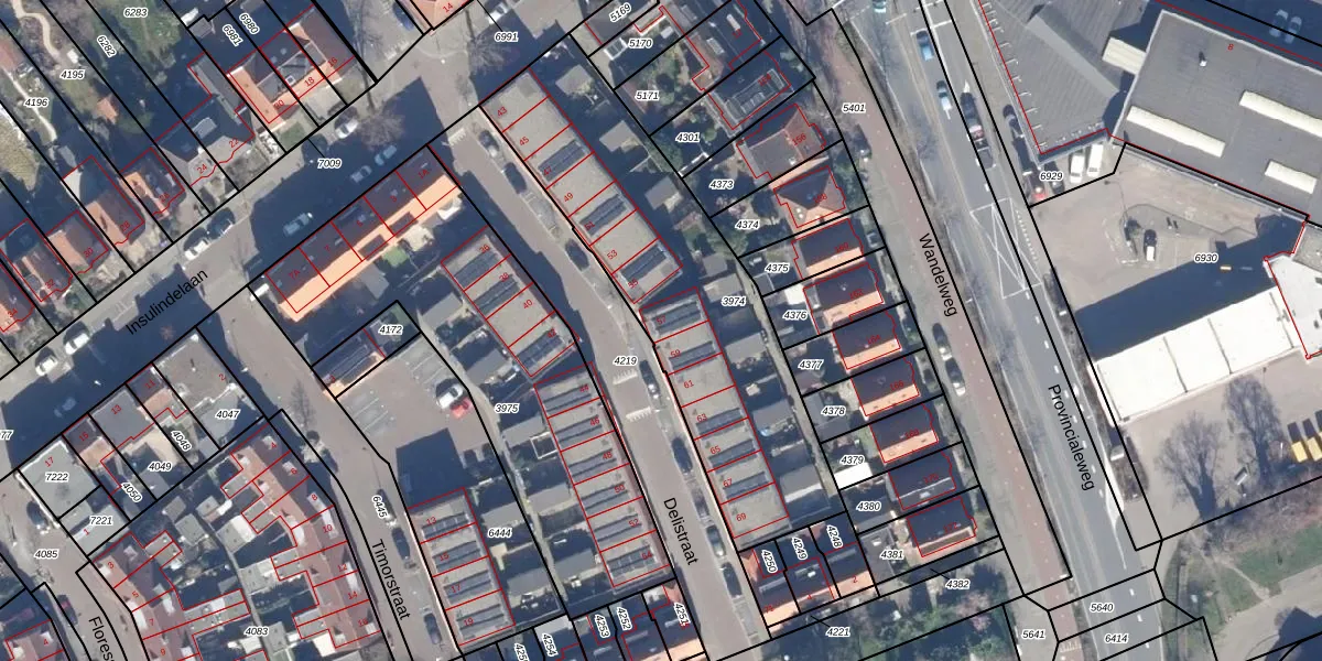 Het perceel waarop Delistraat 57 staat heeft een oppervlakte van 1455 m². Dit is een zeer groot perceel. De perceeloppervlakte wordt geregistreerd door het Kadaster. Gedetailleerde informatie over de maten van dit perceel kunt u vinden in het rapport Kadastrale kaart met maatvoering van Delistraat 57.