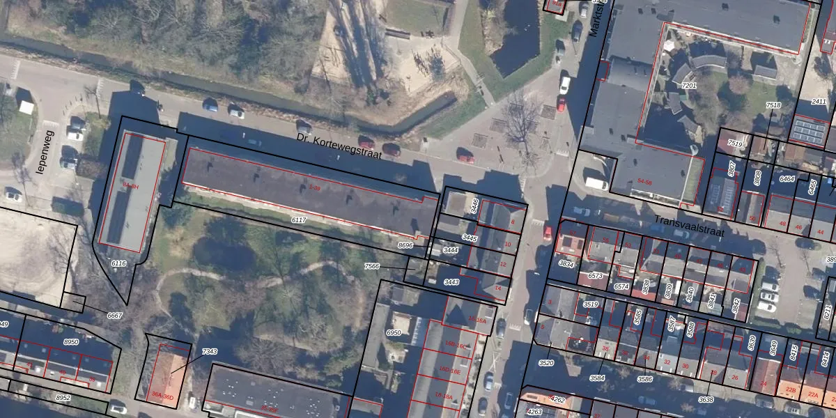 Het perceel waarop Dr. Kortewegstraat 1 staat heeft een oppervlakte van 994 m². Dit is een groot perceel. De perceeloppervlakte wordt geregistreerd door het Kadaster. Gedetailleerde informatie over de maten van dit perceel kunt u vinden in het rapport Kadastrale kaart met maatvoering van Dr. Kortewegstraat 1.