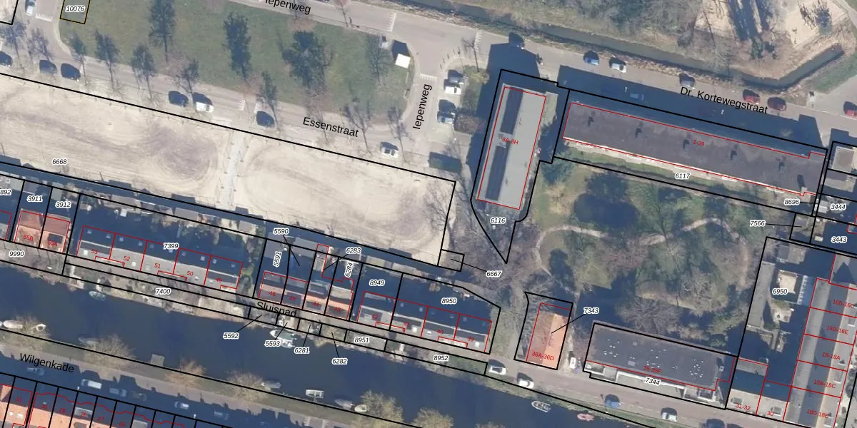 Essenstraat 1 is gelegen op kadastraal perceel WMV00A6668. Deze kadastrale aanduiding is uniek en wordt gebruikt door het Kadaster om eigendomsrechten en andere zakelijke rechten vast te leggen. Het perceel maakt onderdeel uit van de kadastrale gemeente Wormerveer.