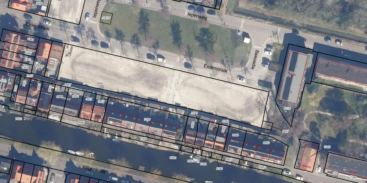 Het perceel waarop Essenstraat 23 staat heeft een oppervlakte van 2160 m². Dit is een zeer groot perceel. De perceeloppervlakte wordt geregistreerd door het Kadaster. Gedetailleerde informatie over de maten van dit perceel kunt u vinden in het rapport Kadastrale kaart met maatvoering van Essenstraat 23.