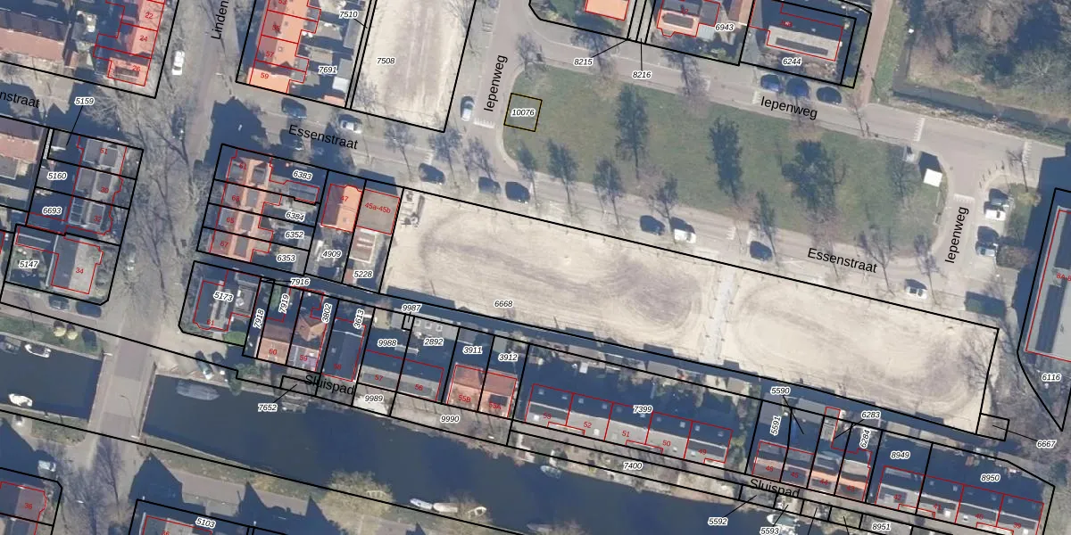 Het perceel waarop Essenstraat 43 staat heeft een oppervlakte van 2160 m². Dit is een zeer groot perceel. De perceeloppervlakte wordt geregistreerd door het Kadaster. Gedetailleerde informatie over de maten van dit perceel kunt u vinden in het rapport Kadastrale kaart met maatvoering van Essenstraat 43.