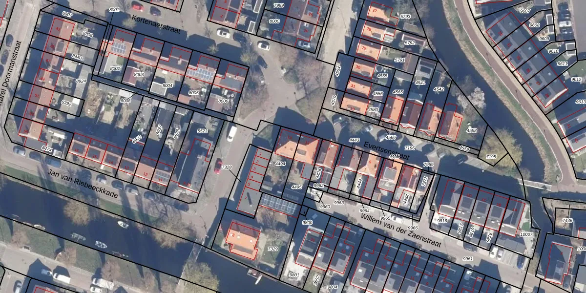 Evertsenstraat 13 is gelegen op kadastraal perceel WMV00A4494. Deze kadastrale aanduiding is uniek en wordt gebruikt door het Kadaster om eigendomsrechten en andere zakelijke rechten vast te leggen. Het perceel maakt onderdeel uit van de kadastrale gemeente Wormerveer.