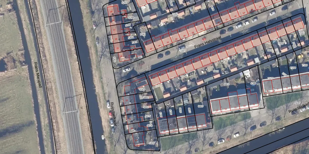 Het perceel waarop Frans Halsstraat 35 staat heeft een oppervlakte van 1717 m². Dit is een zeer groot perceel. De perceeloppervlakte wordt geregistreerd door het Kadaster. Gedetailleerde informatie over de maten van dit perceel kunt u vinden in het rapport Kadastrale kaart met maatvoering van Frans Halsstraat 35.