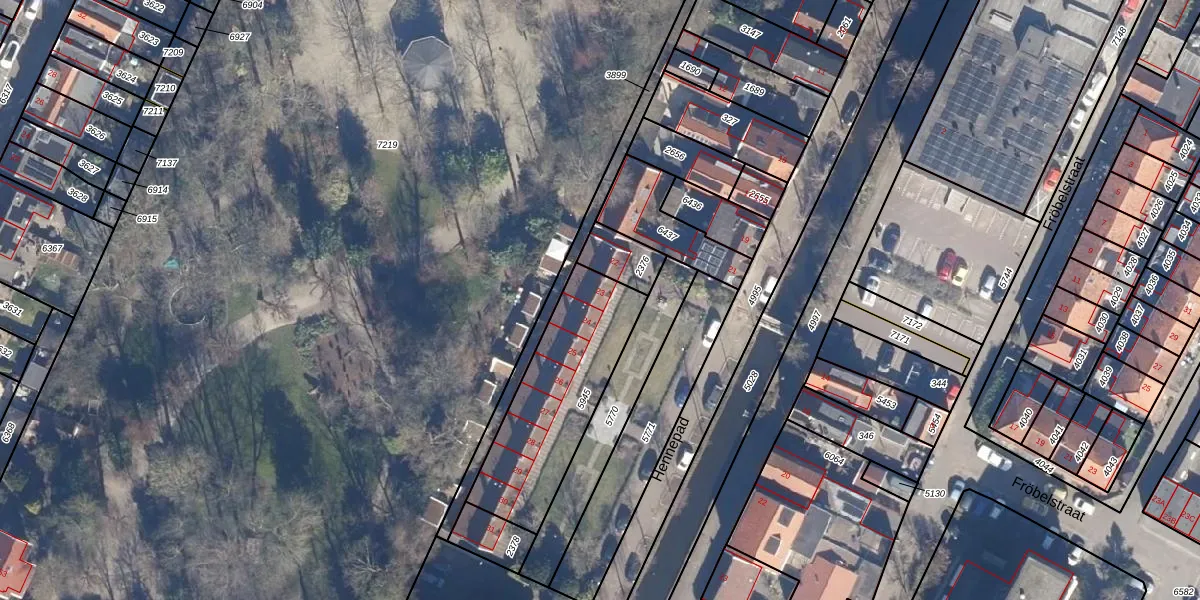 Het perceel waarop Hennepad 23 staat heeft een oppervlakte van 568 m². Dit is een groot perceel. De perceeloppervlakte wordt geregistreerd door het Kadaster. Gedetailleerde informatie over de maten van dit perceel kunt u vinden in het rapport Kadastrale kaart met maatvoering van Hennepad 23.