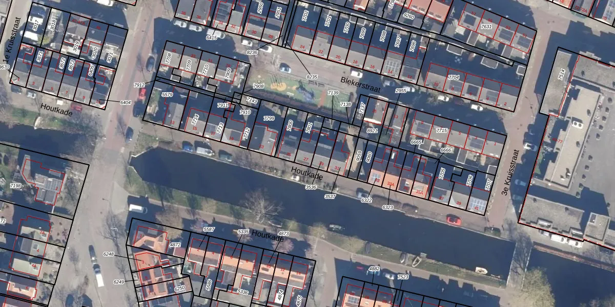 Het perceel waarop Houtkade 27 staat heeft een oppervlakte van 95 m². Dit is een klein perceel. De perceeloppervlakte wordt geregistreerd door het Kadaster. Gedetailleerde informatie over de maten van dit perceel kunt u vinden in het rapport Kadastrale kaart met maatvoering van Houtkade 27.