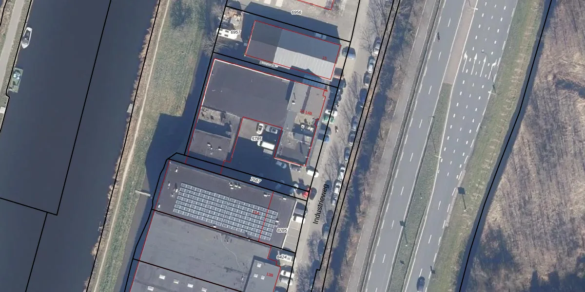 Het perceel waarop Industrieweg 14-B staat heeft een oppervlakte van 1648 m². Dit is een zeer groot perceel. De perceeloppervlakte wordt geregistreerd door het Kadaster. Gedetailleerde informatie over de maten van dit perceel kunt u vinden in het rapport Kadastrale kaart met maatvoering van Industrieweg 14-B.