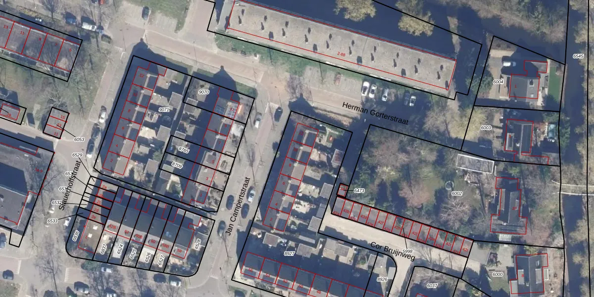 Het perceel waarop Jan Campertstraat 10 staat heeft een oppervlakte van 1827 m². Dit is een zeer groot perceel. De perceeloppervlakte wordt geregistreerd door het Kadaster. Gedetailleerde informatie over de maten van dit perceel kunt u vinden in het rapport Kadastrale kaart met maatvoering van Jan Campertstraat 10.