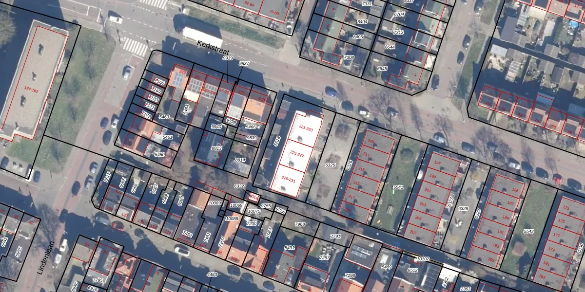 Het perceel waarop Kerkstraat 225 staat heeft een oppervlakte van 614 m². Dit is een groot perceel. De perceeloppervlakte wordt geregistreerd door het Kadaster. Gedetailleerde informatie over de maten van dit perceel kunt u vinden in het rapport Kadastrale kaart met maatvoering van Kerkstraat 225.