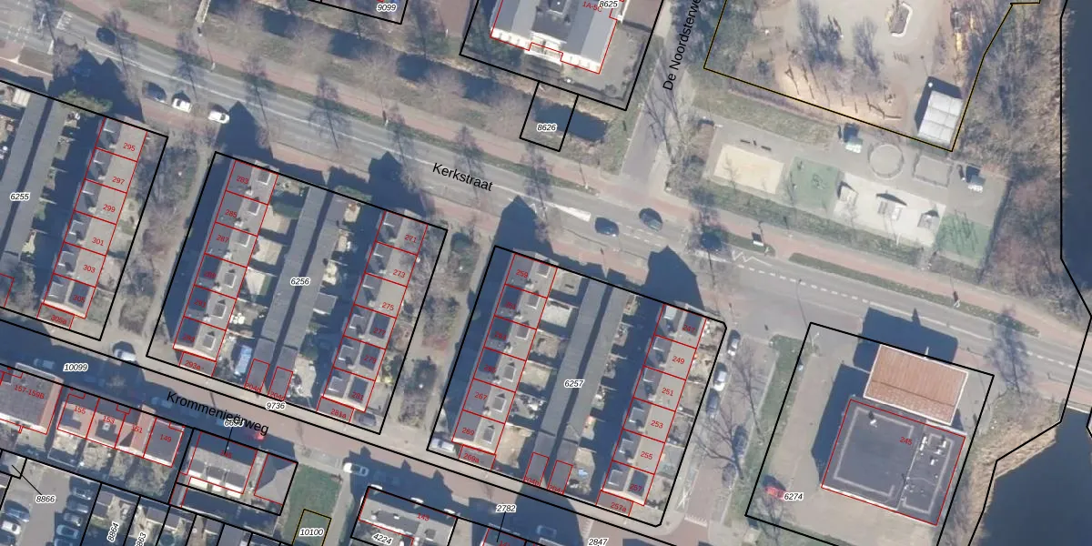 Kerkstraat 259 is gelegen op kadastraal perceel WMV00A6257. Deze kadastrale aanduiding is uniek en wordt gebruikt door het Kadaster om eigendomsrechten en andere zakelijke rechten vast te leggen. Het perceel maakt onderdeel uit van de kadastrale gemeente Wormerveer.